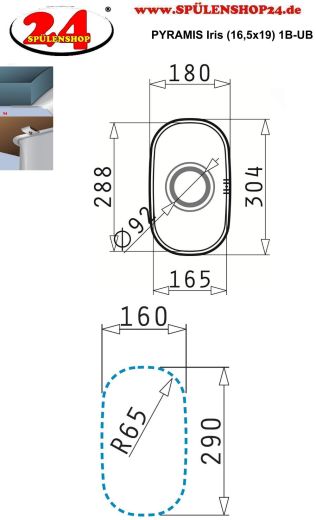 Unterbauspüle / Edelstahlspüle Oberfläche: Edelstahl poliert Außenmaße: 180x304mm