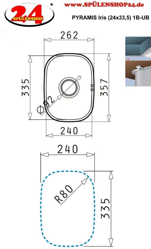 UNTERBAUSPÜLE Edelstahlspüle / Zusatzbecken Außenmaße: 262x357mm