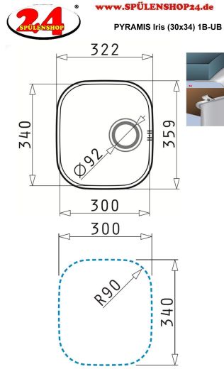Unterbauspüle / Edelstahlspüle Oberfläche: Edelstahl poliert Außenmaße: 322x359mm