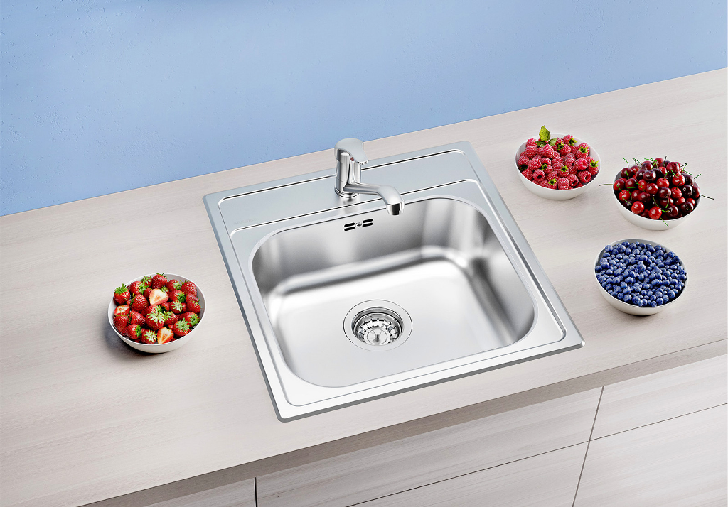 Edelstahlspüle mit Druckknopfventil reversibel Oberfläche: Edelstahl poliert Außenmaße: 895x510mm