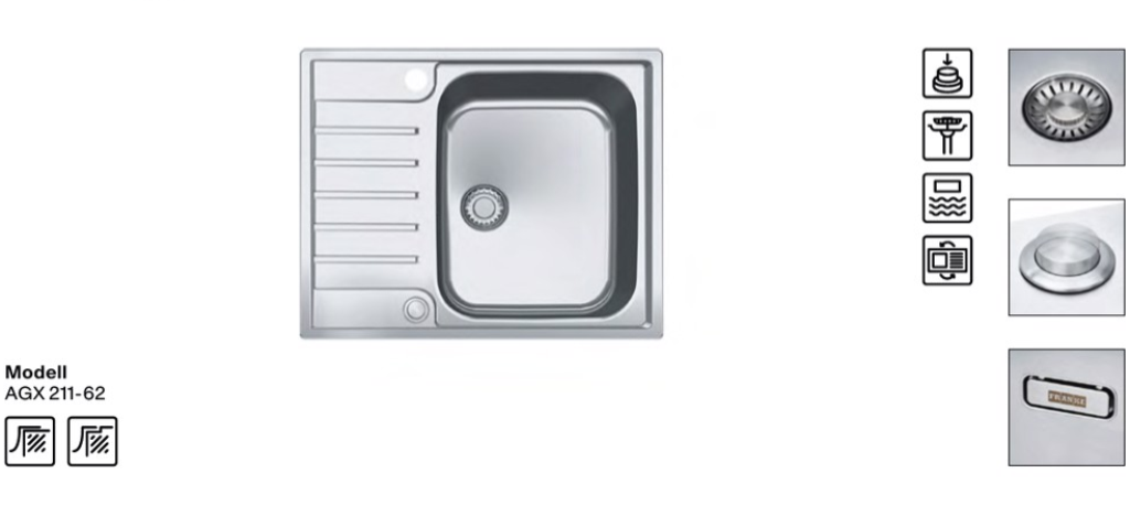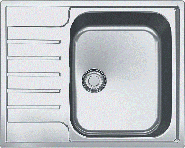 Edelstahlspüle mit Druckknopfventil reversibel Oberfläche: Edelstahl poliert Außenmaße: 625x510mm