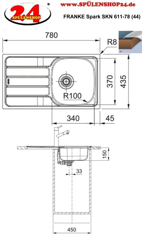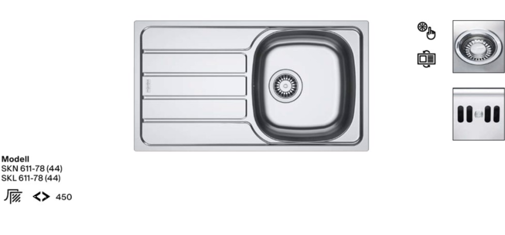 ✅Lagerware! Edelstahlspüle mit Handbetätigung reversibel Oberfläche: Edelstahl poliert Außenmaße: 780x435mm