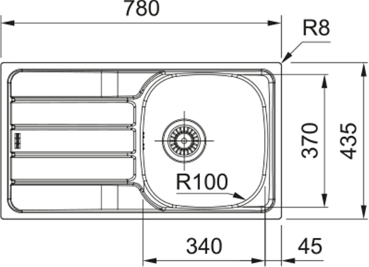 Edelstahlspüle mit Handbetätigung reversibel Oberfläche: Edelstahl poliert Außenmaße: 620x435mm