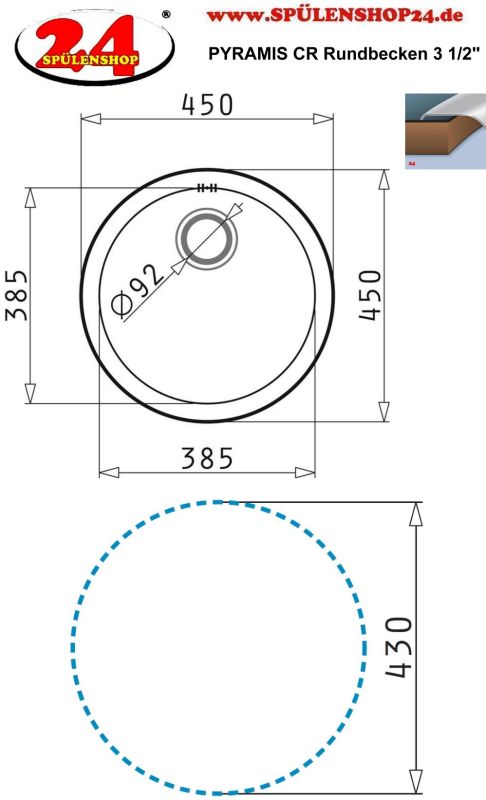 Edelstahlspüle / Rundspüle Durchmesser Ø 450mm ✅Lagerware! für Unterschränke ab 45cm Breite