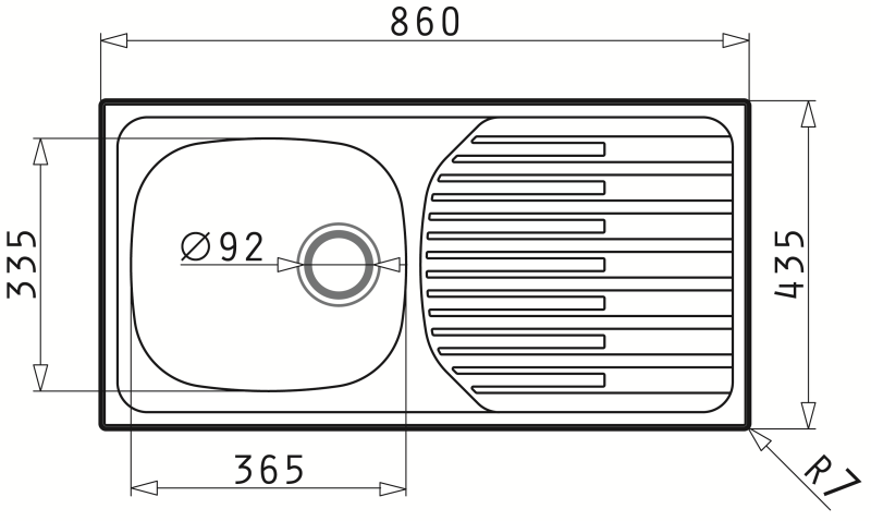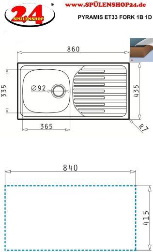 Edelstahlspüle / Einbauspüle reversibel Oberfläche: Edelstahl poliert Außenmaße: 860x435mm