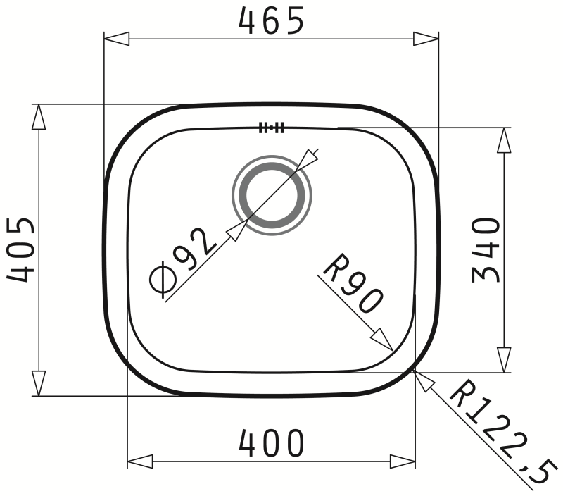 Edelstahlspüle / Einbauspüle Oberfläche: Edelstahl poliert Außenmaße: 465x405mm