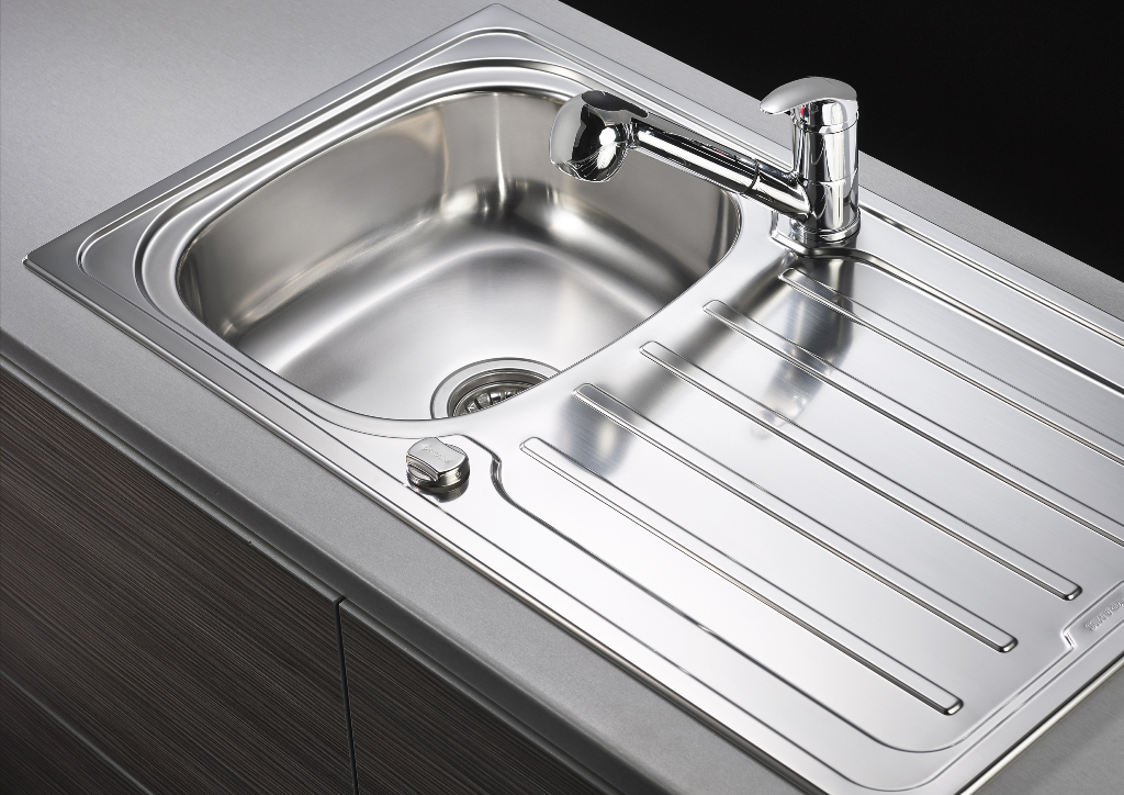 Edelstahlspüle mit Drehexcenter reversibel Oberfläche: Edelstahl poliert Außenmaße: 860x500mm