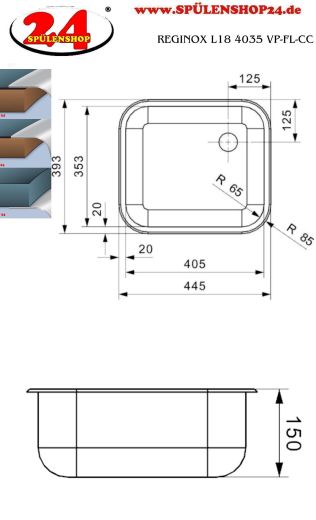 Edelstahlspüle mit Flachrand Spülen-Serie: Clean & Care (-CC-) Beckentiefe: 150mm