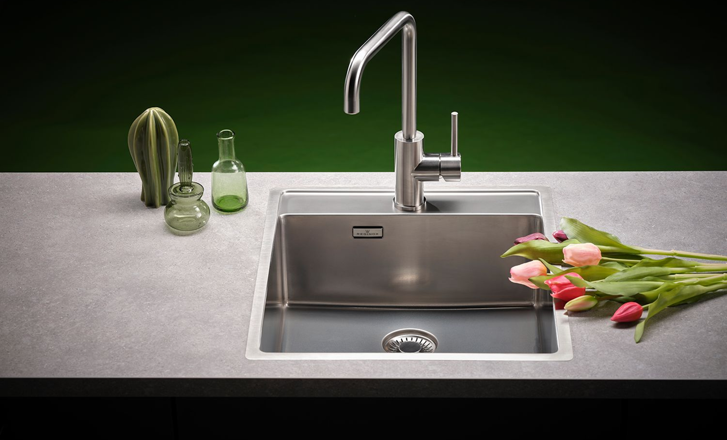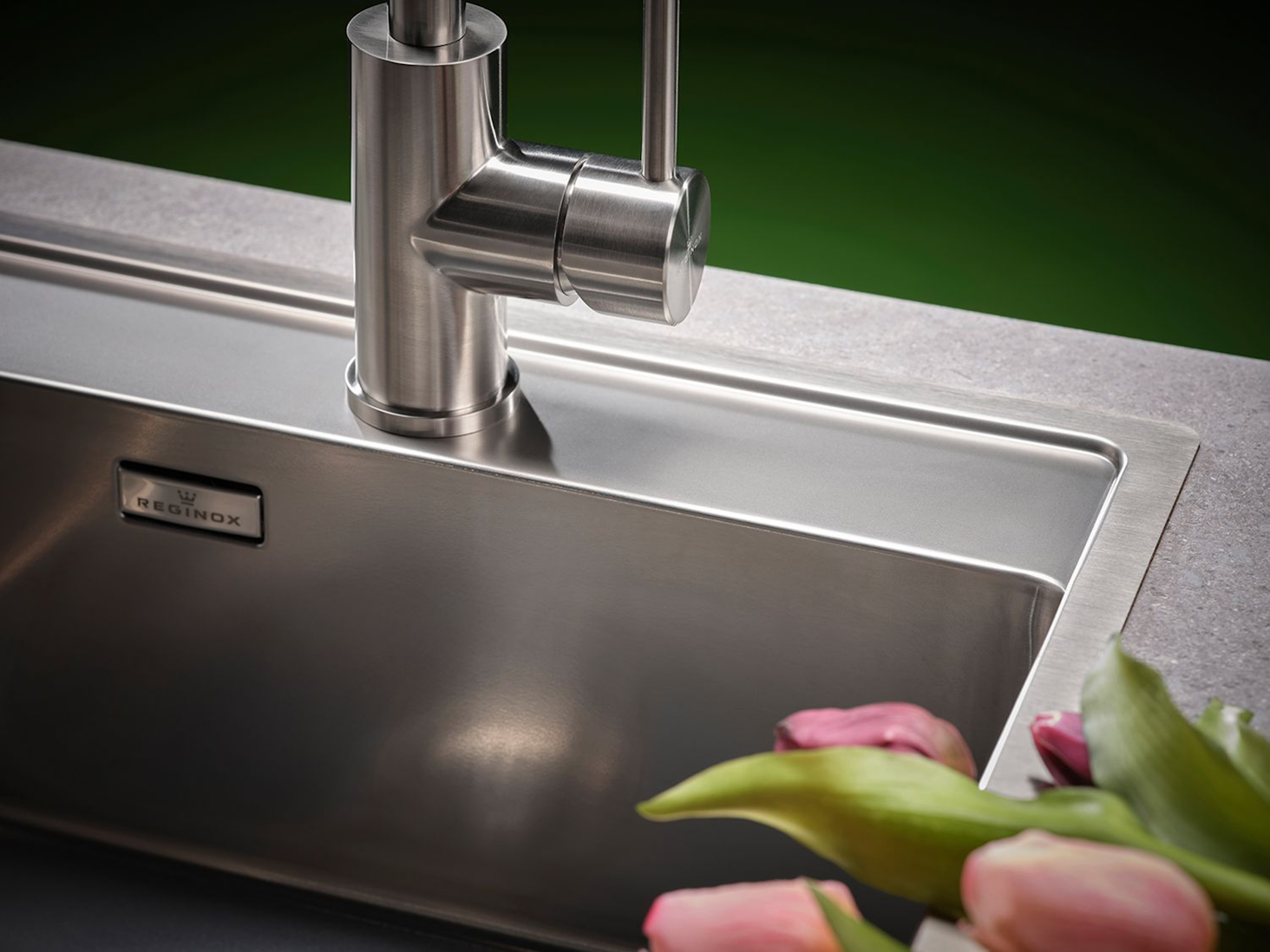 Edelstahl-Einbauspüle mit Flachrand Außenmaße: 440x510mm Beckentiefe: 180mm