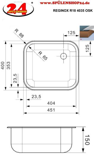 Edelstahlspüle / Unterbauspüle Oberfläche: Edelstahl Bürstfinish Außenmaße: 490x440mm