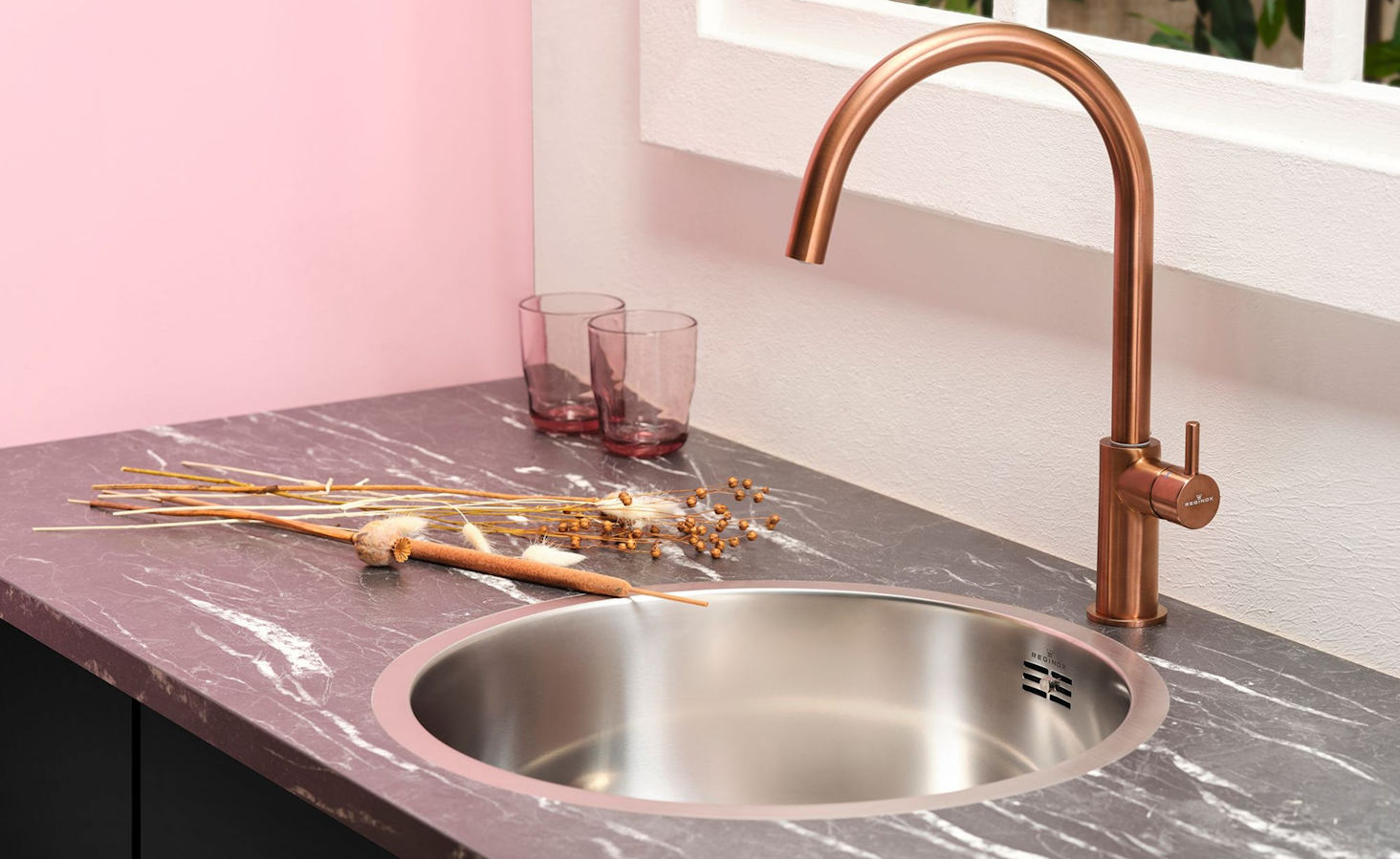Einhand-Spültischbatterie mit Festauslauf Hochdruck Oberfläche: Edelstahl massiv 360° schwenkbarer Auslauf
