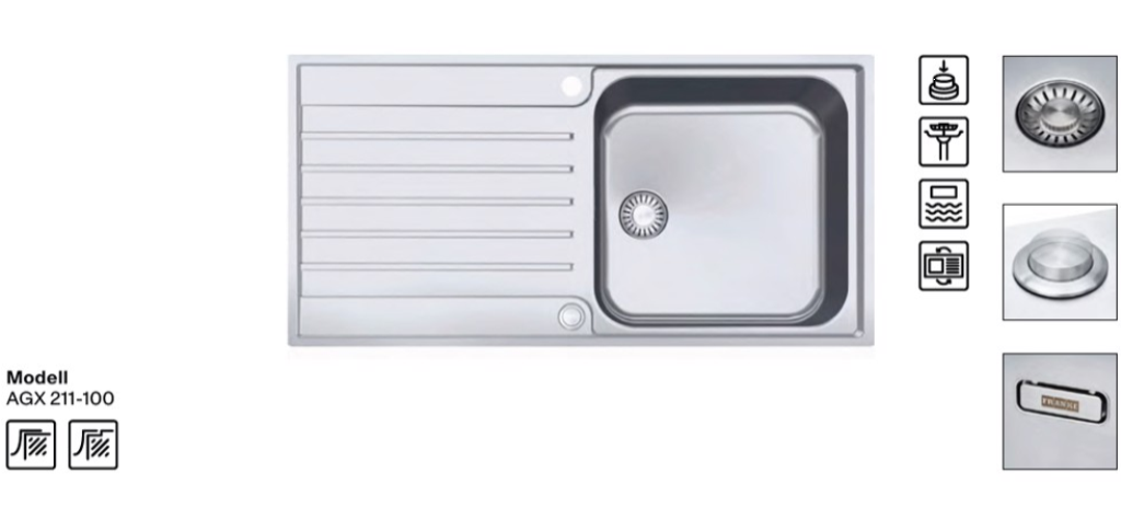 Edelstahlspüle mit Druckknopfventil reversibel Oberfläche: Edelstahl poliert Außenmaße: 1000x510mm