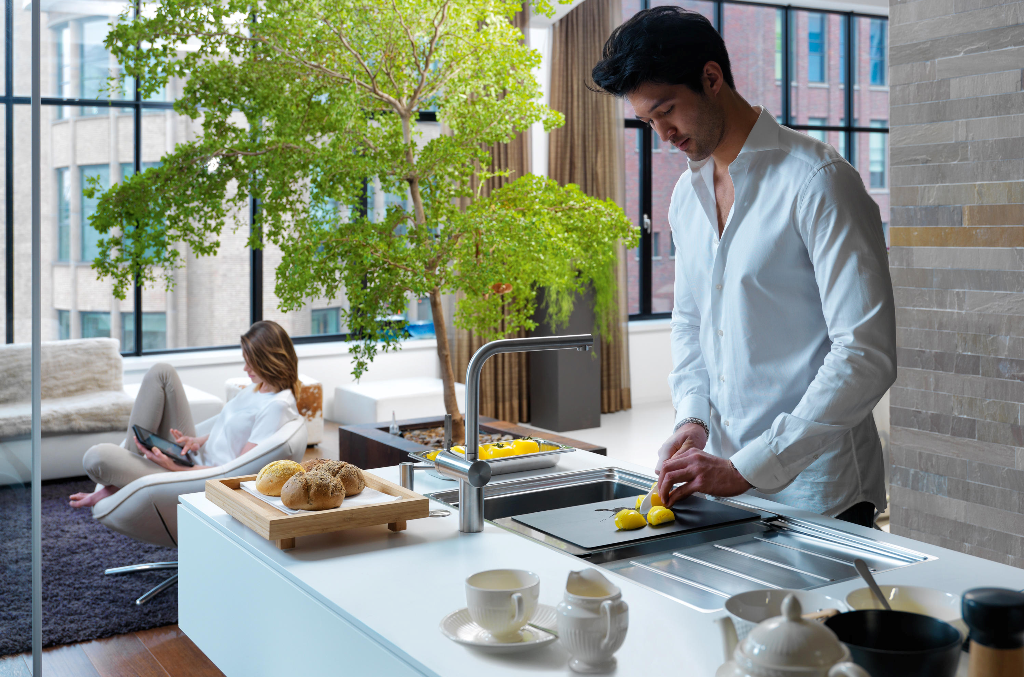 Edelstahlspüle mit Druckknopfventil Oberfläche: Edelstahl Seidenglanz Außenmaße: 860x458mm