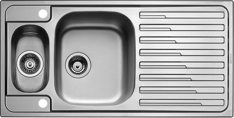 Edelstahlspüle mit Drehexcenter reversibel Außenmaße: 1000x500mm Beckentiefe: 190/130mm