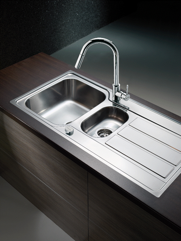 Edelstahlspüle mit Drehexcenter reversibel Oberfläche: Edelstahl poliert Außenmaße: 1000x500mm