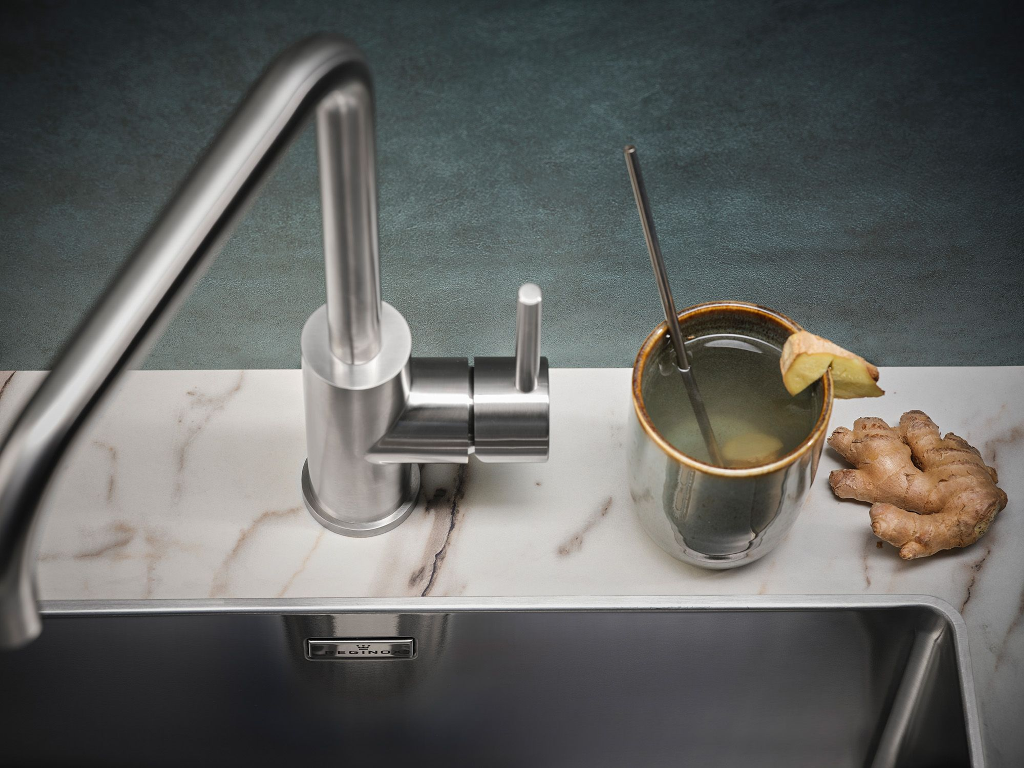 Einhand-Spültischbatterie mit Zugauslauf Hochdruck Oberfläche: Edelstahl massiv 360° schwenkbarer Auslauf