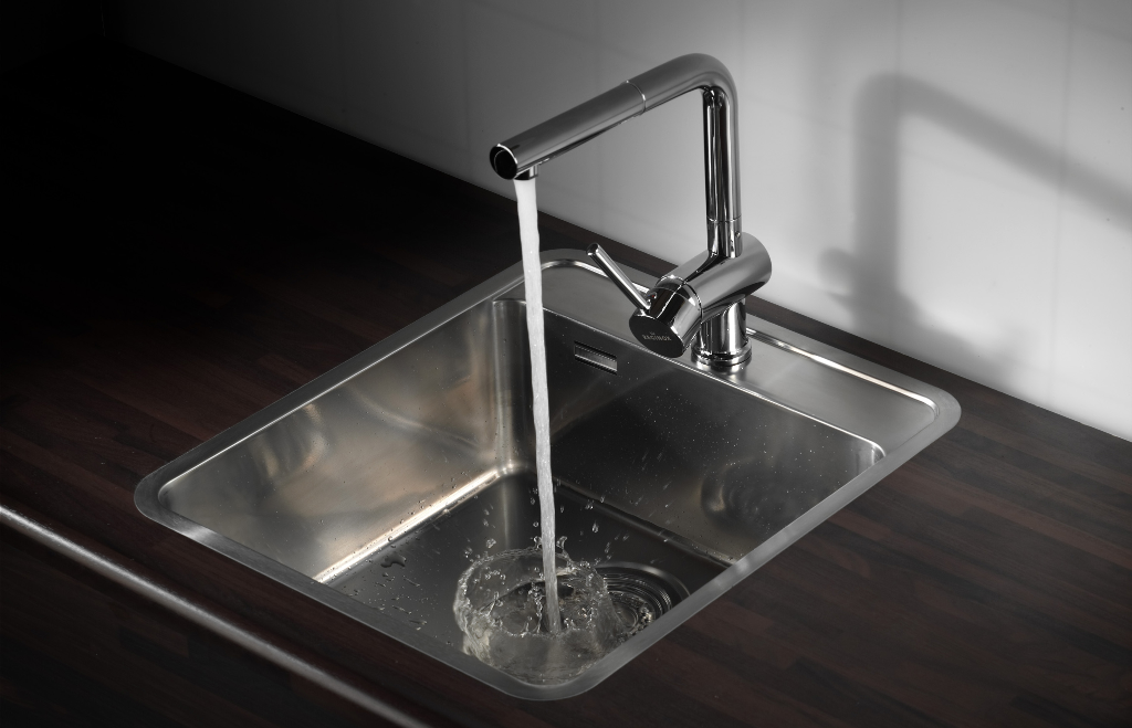 Edelstahlspüle mit Druckknopfventil Oberfläche: Edelstahl Seidenglanz Außenmaße: 580x520mm