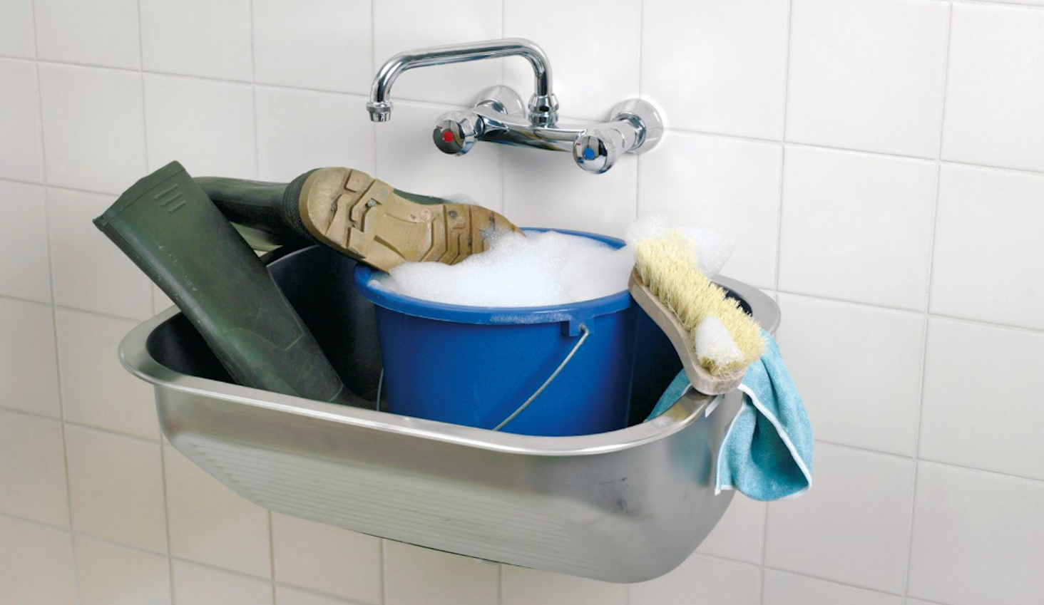 DREILICH Arbeits-/ Mehrzweckbecken wandhängend Werkraumbecken mit integriertem Schlammfangbehälter Abmessungen: Außen - 1200 x 250 x 600mm (B x H x T) Abmessungen: Innen - 1100 x 250 x 510mm (B x H x T) Material: 1.4301 CNS V2A