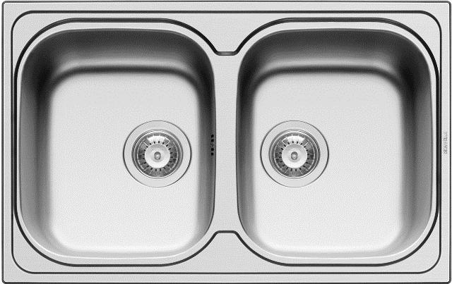 Edelstahl-Einbauspüle 2 Becken Außenmaße 790x500mm Beckenabmessungen: 340x400mm