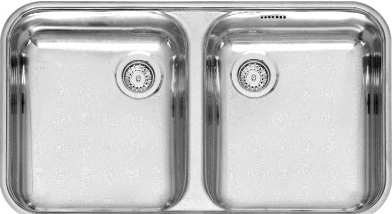 Edelstahlspüle mit Flachrand Außenmaße: 791x445mm Beckentiefe: 2x150mm