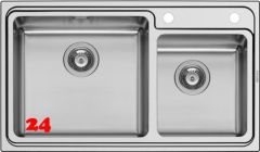 Edelstahl-Einbauspüle mit Flachrand Außenmaße: 860x440mm Beckentiefe: 2x180mm