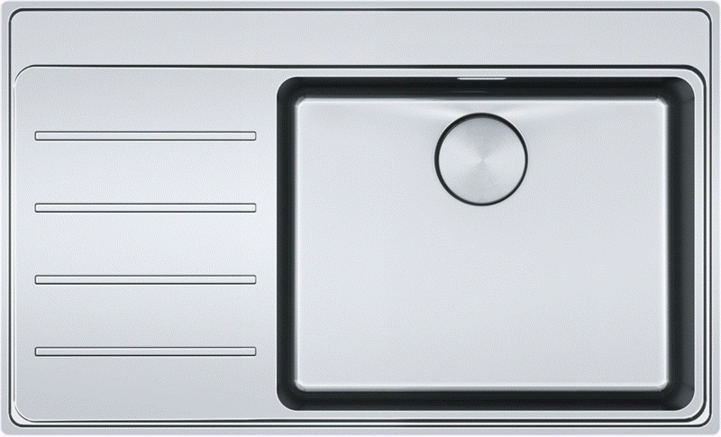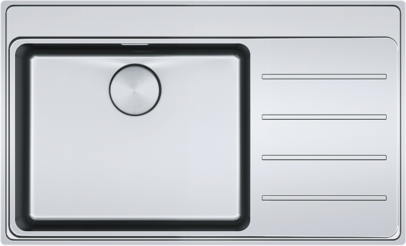 Edelstahlspüle mit Druckknopfventil Oberfläche: Edelstahl Seidenglanz Außenmaße: 860x520mm