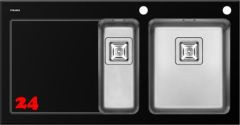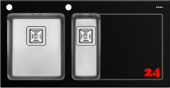 Pyramis Küchenspüle Crystalon (100x52) 1 1/2B 1D Schwarz RH Kombination aus Sicherheitsglas und Edelstahlbecken