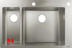 HANSGROHE Küchenspüle S712-F655 Einbauspüle 180/450 Edelstahlspüle Flachrand Siebkorb als Drehknopfventil