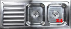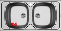 Edelstahlspüle mit Handbetätigung Doppelspüle / Doppelbecken Oberfläche: Edelstahl poliert Außenmaße 790x500mm