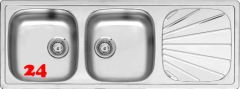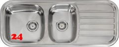 Edelstahlspüle mit 2 Becken reversibel Außenmaße 1160x500mm Beckentiefe 160/160mm