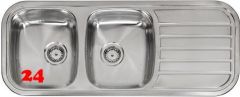 Edelstahlspüle mit Drehexcenter reversibel Oberfläche: Edelstahl poliert Außenmaße 1160x500mm