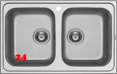 Edelstahl-Einbauspüle 2 Becken Außenmaße 790x500mm Beckenabmessungen: 340x400mm