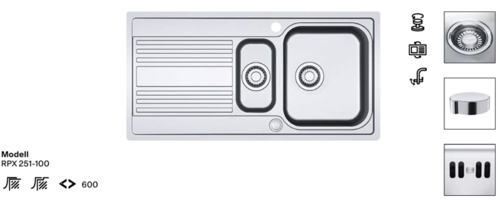 Edelstahlspüle mit Drehexcenter reversibel Oberfläche: Edelstahl poliert Außenmaße: 1004x514mm