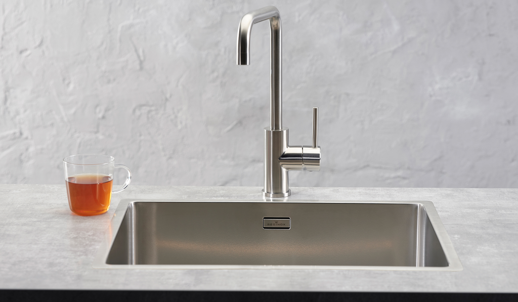Einhand-Spültischbatterie mit Festauslauf Oberfläche: Edelstahl massiv 360° schwenkbarer Auslauf