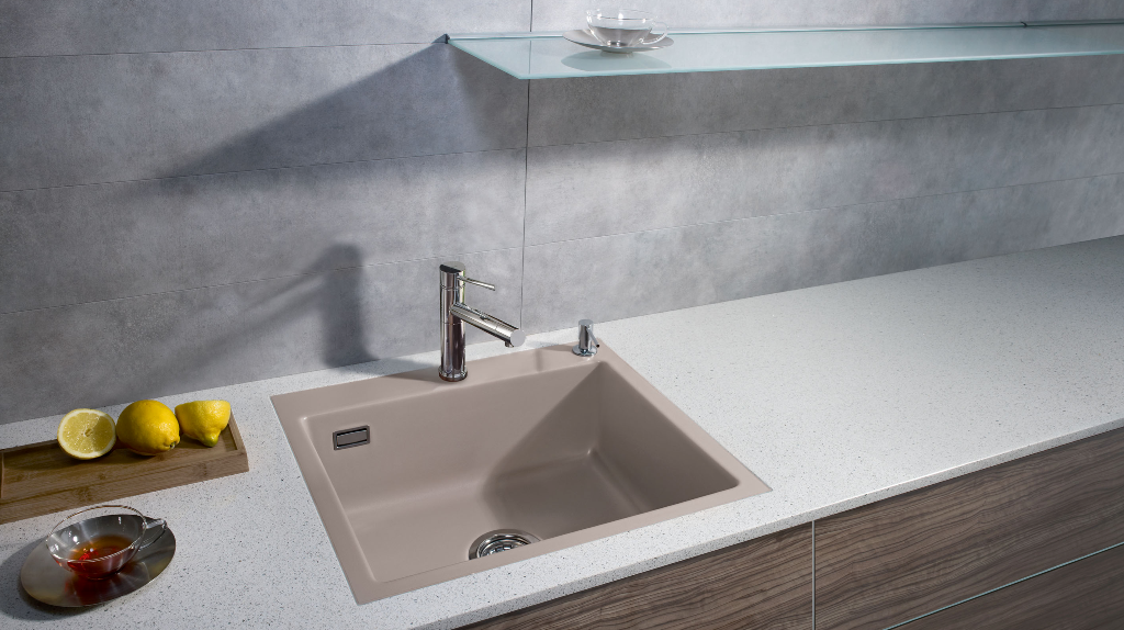 KERAMIK-Einbauspüle mit Handbetätigung NUR für die flächenbündige Montage Außenmaße: 551mm±1mm x 486mm±1mm Ausschnittsmaß in der APL: Breite 555 x Tiefe 490mm