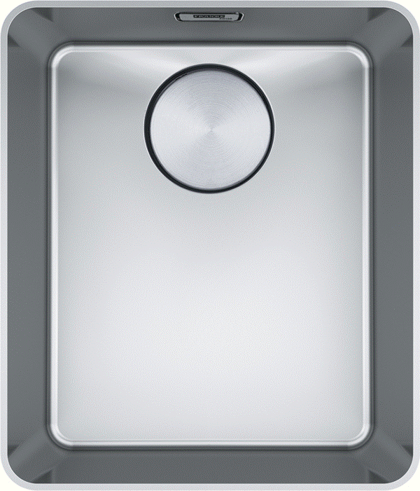 Edelstahlspüle mit Druckknopfventil Oberfläche: Edelstahl Seidenglanz Außenmaße: 352x412mm