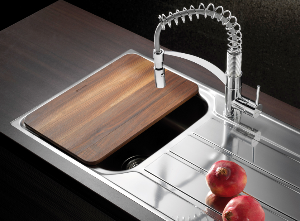 Edelstahlspüle mit Drehexcenter reversibel Oberfläche: Edelstahl poliert Außenmaße: 1160x500mm