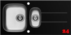 DESIGN-Edelstahl/Glaskombination Ablauf und Korbventil quadratisch Außenmaße: 1000x520mm