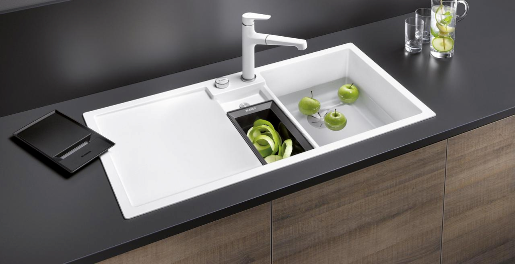 KERAMIK-Einbauspüle mit Handbetätigung NUR für die flächenbündige Montage Außenmaße: 1036mm±1mm x 486mm±1mm Ausschnittsmaß in der APL: Breite 1.040 x Tiefe 490mm
