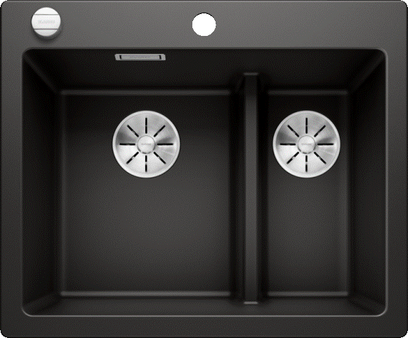 BLANCO InFino Ab- und Überlaufset Schwarz Markenprodukt der Firma BLANCO für Doppelbecken und 1 1/2 Becken mit Überlauf C-overflow