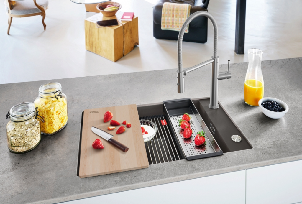 .Küchenspülen dar. Diese Innovation ermöglicht die Nutzung des Beckens auf drei Ebenen, wodurch die Arbeitsabläufe bei der Zubereitung von Lebensmitteln optimiert werden und gleichzeitig wertvoller Platz auf der Arbeitsplatte eingesparrt wird.