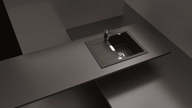 Granitspüle /.Einbauspüle aus dem Material .Cristalite® Basic Line in 4 Farben zum Einbau von oben in die Arbeitsplatte