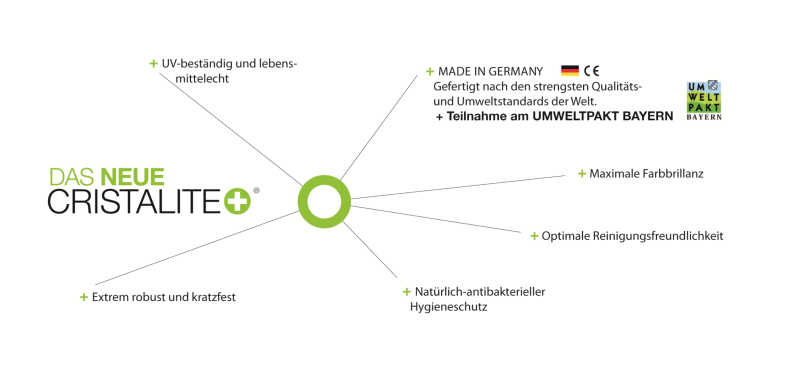 Mit .CRISTADUR® und .CRISTALITE® bieten wir zwei verschiedenen Quarzkomposit-Materialitäten an, aus denen unsere Spülen bestehen. Wie man den Unterschied zwischen den beiden am besten erkennt? Mit den Händen! Die Oberfläche von .CRISTALITE® wirkt steinern und leicht rau; die patentierte, extrem feine Struktur von .CRISTADUR® dagegen brilliert durch ihre seidig-glatte Haptik. Während die Premiumoberfläche von .CRISTADUR® auf dem Quarzkomposit-Markt eine alleinige Spitzenposition einnimmt, ist .CRISTALITE® unser beliebter Klassiker, der sich in vielen tollen Trendfarben immer wieder neu erfindet. Beiden gemeinsam: die einzigartige Produktqualität, die nur entsteht, wo man noch mit Handarbeit und dem Herzen dabei ist. Spülen gefertigt aus besten und regionalen Werkstoffen durch die Hände unserer erfahrender Mitarbeiter. Und die arbeiten immer auch mit einem Auge für Details, einer Nase für Trends und einem Herz für das Außergewöhnliche. Auf diese Weise stellen wir neue Maßstäbe auf.