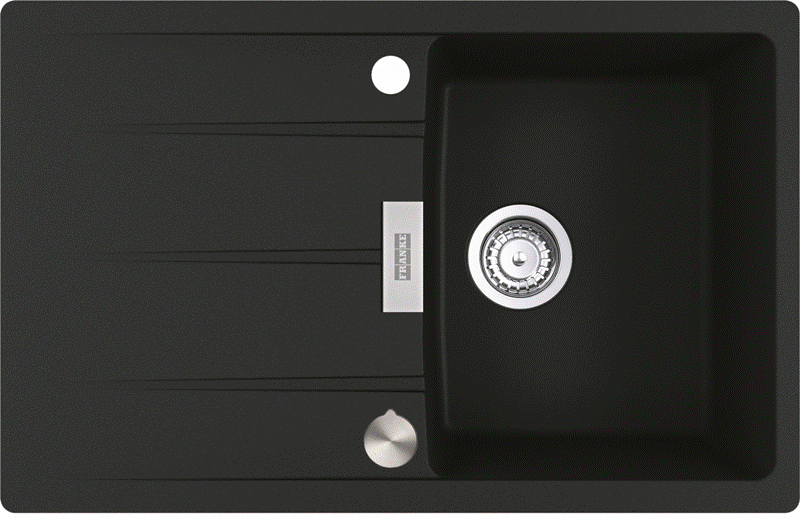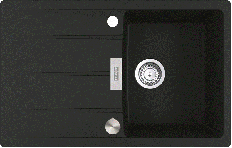Granitspüle / Einbauspüle mit Hahnlochbank Black Matt - Black Collection Küchenspüle aus Fragranit+ Außenmaße: 760x510mm