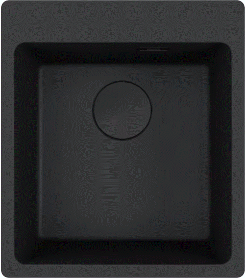 Granitspüle / Einbauspüle mit Hahnlochbank Black Matt - Black Collection Küchenspüle aus Fragranit+ Außenmaße: 440x500mm