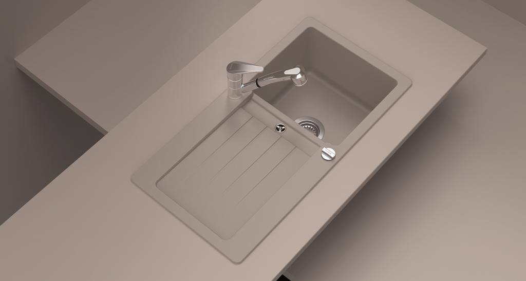 Granitspüle /.Einbauspüle aus dem Material .Cristalite® Basic Line in 4 Farben zum Einbau von oben in die Arbeitsplatte
