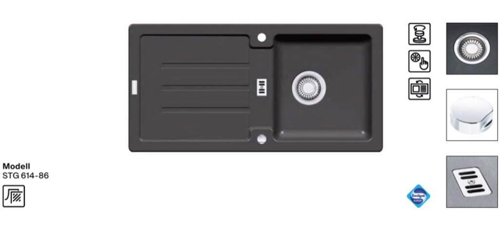 Granitspüle aus Quarzkomposit Spüle mit Drehexcenter Außenmaße 1000x500mm