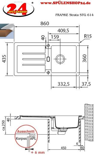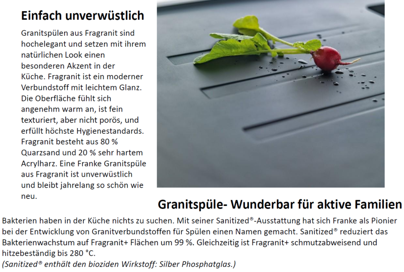 Granitspüle / Einbauspüle reversibel Küchenspüle aus Fragranit+ Außenmaße: 860x435mm