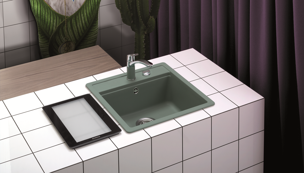 Granitspüle /.Einbauspüle aus dem Material .Cristalite® Basic Line in 4 Farben zum Einbau von oben in die Arbeitsplatte