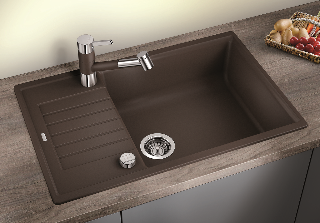 Granitspüle / Einbauspüle reversibel Küchenspüle aus Silgranit® PuraDur®II Farbe Tartufo Außenmaße: 780x500mm ✅Lagerware!